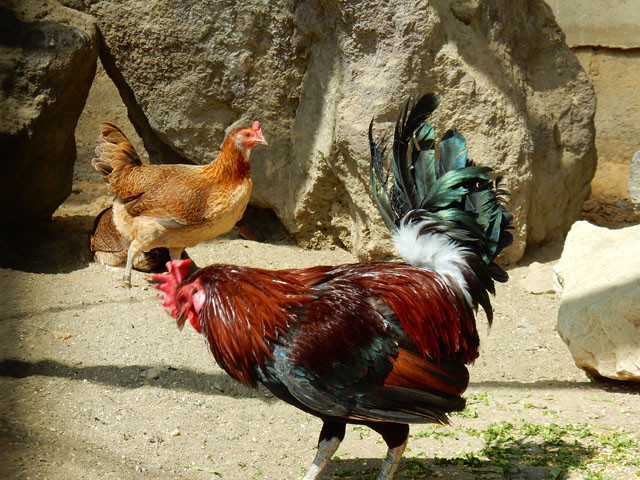 先週訪れた春先の多摩動物公園訪問記・その2をお届けさせていただきます。・°・。今回の訪問では、ニジキジ御夫妻と同居している、一羽のオナガさんと再会するのも楽しみにしておりました。と言いますのも。。前回訪れた時、柵越しに飛んでいた小さな蜂をジーッと、凝視していたかと思ったら・・・パクッ!と鋭いくちばしの一撃でその蜂を見事に捕らえたのでした(*゜0゜)! なんという早業と手練れかといたく感心してしまったのでした(^-^ゞ 今回も観覧側の柵のそばに留まっておりましたが、まだ飛んでいる虫が少ないようで、間もなく地面に降りて与えられたご飯をついばみ始めました(^^) 黒い帽子をかぶっているみたいなカラーリングがかわいらしくて好きです♪ 並びにあるセキショクヤケイさんのケージでは、小生の今年の年賀状の版画モチーフと同じような構図で撮ろうと試みたのですが・・・雌鶏さんと雄鶏さんの位置が、うまい具合になかなか重なっていただけずあきらめました。。(*´-`)・・・その3へつづく。・°・。2017/03/23(木) アトリエ☆イボヤギ 木村大介
