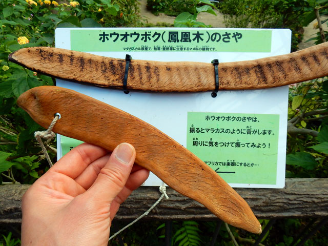 温室には蝶たちにも人気のランタナの花もたくさん咲いていて、わたくしもそのシャーベットカラーの取り合わせが好きです。・°・。ツマベニチョウさんが翅を閉じて木の葉に留まっておりましたが、陽の光に透かされて、トレードマークの鮮やかなオレンジ色が垣間見えているのがステキでした。・°・。大温室のシンボルツリーのような存在の、ホウオウボクの実が展示されていて、乾燥させた実を振るとマラカスのような音がするとのことで、さっそく試してみました・・・シャカシャカと心地よい音を体感できました♪。・°・。その6へつづく・・・2017/03/26(日) アトリエ☆イボヤギ 木村大介