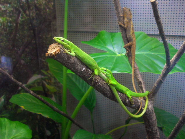 昨日訪れました多摩動物公園ですが、これから少しずつ続きをアップしてまいりたいと思います。・°・。生態園大温室の周囲には夏みかんの樹がたくさん植え られております。いくつか実もなっておりましたが、目的はもちろんアゲハの仲間の幼虫の餌となるミカンの葉です。・°・。累代飼育を滞り無く回転させるた めには、飼育する昆虫ごとに異なる種類の食樹や食草と、万が一に備えてたくさんのストックが大切なんですね。・°・。幼虫の生体展示コーナーでは、色艶の よいシロオビアゲハのベイビーたち がモリモリと新鮮なミカンの葉をいただいておりました。・°・。*生態園には沖縄の爬虫類も展示されておりますが、お気に入りは鮮やかなグリーンが魅力的なサキシマカナヘビたちです。枝の上に二匹並んで、目蓋を時折瞬かせながらまどろむ姿がかわいかったです。・°・。後ろにある縦向きの枝につかまっているのは、サキシマキノボリトカゲさんです。やはりかわいい目とお茶目な顔をしていて好きになりました。・°・。◎ サキシマカナヘビは尾がとても長くて、同じ緑の葉の上にいるとその美しさがいっそう引き立って見えました。・°・。* アトリエ☆イボヤギ 木村大介