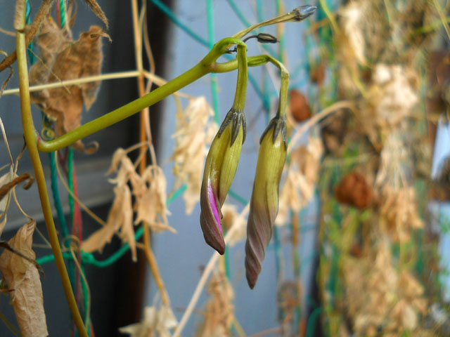 〈本日のタイトル解説:『冬至の朝に獅子唐のような朝顔の蕾たち。。』〉