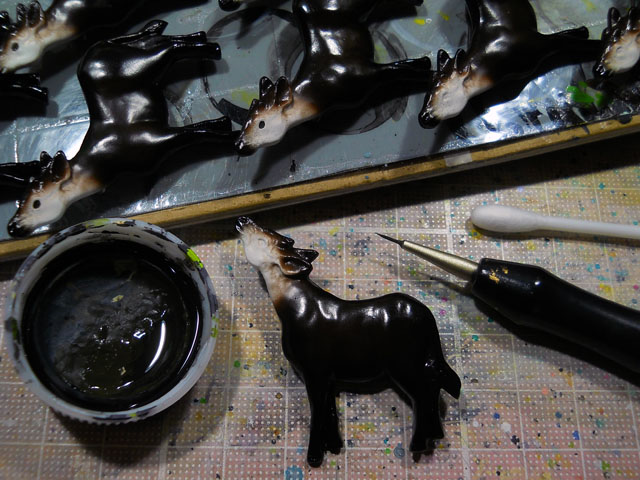 昨日つぼみの膨らみを確認した白花の沈丁花ですが、ひとつだけ先に咲き始めている花がございました。・°・。鼻を近づけるとまだやわらかく甘い香りがいたしました。・°・。* 今日は東日本大震災から4年の日ですが、発災時間にラジオから聞こえてきた呼びかけに合わせて、作業の手を止めて黙祷を捧げました。。。これからもわたくしに出来ることは何かを、考え続けて参りたいと思いました・°・。* 今日もブローチの塗装を行いました。写真はオカピの目の下色を入れているところです。つぶらな瞳になるように、塗料を筆に適量含ませて慎重に描き入れてゆきました。・°・。◎ 先日の手作りケーキも、最後のワンピースとなりました。ブルーベリーソースをたっぷり掛けて、じっくりと味わいながらいただきました。・°・。◎ アトリエ☆イボヤギ 木村大介