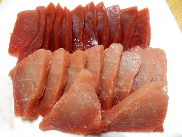 大晦日の今朝はとても清々しい空で始まりました。・°・。東の空に残る月も青い空を背にとてもきれいに見えました。・°・。毎年末に築地の場内市場で買い出しをしている友人が、マグロのサクのおすそ分けを持って来てくださいました! 美しい赤味と程よく脂ののった中トロのお刺身をいただきながら、その格別なおいしさに大変幸せを感じました。。(≧▽≦)!