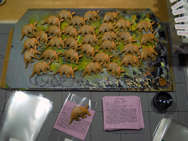 ジョロウグモの巣がそこかしこで目に付くようになりました。・°・。中央に陣取る巣の主も巣によっては、ずい分と立派に大きく育っていて、まさに女郎の風格に満ちておりました。・°・。すぐそばにスリムで小柄なオスが控えめに待機している健気な姿には、どこか哀愁を感じてしまいます。。* 秋の過ごしやすい時期のうちにと、少しずつブローチ作品のストックを増しております。・°・。長い工程を経て完成したブローチが、最終チェックを無事に通過してパッケージングする時は、制作の苦労が一番報われる時間でもあります。・°・。◎ 茨城の水戸のお土産に「水戸の梅」をいただきました。甘い白餡を紫蘇の葉で包んだ老舗の和菓子ですが、香り高く甘じょっぱい味覚は、おとなになってからよりおいしく感じられるようになりました。・°・。* アトリエ☆イボヤギ 木村大介