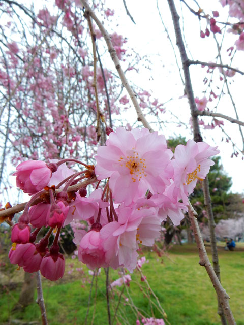 史跡公園に着くと枝垂れ桜が咲いておりましが、同じ品種でも樹によって咲き始めにばらつきが大きいようで、まだほとんど咲いていないのから既に四分咲きくらいまで様々でした。・°・。*手の平に載せているのは近くに落ちていた染井吉野の花です。・°・。*