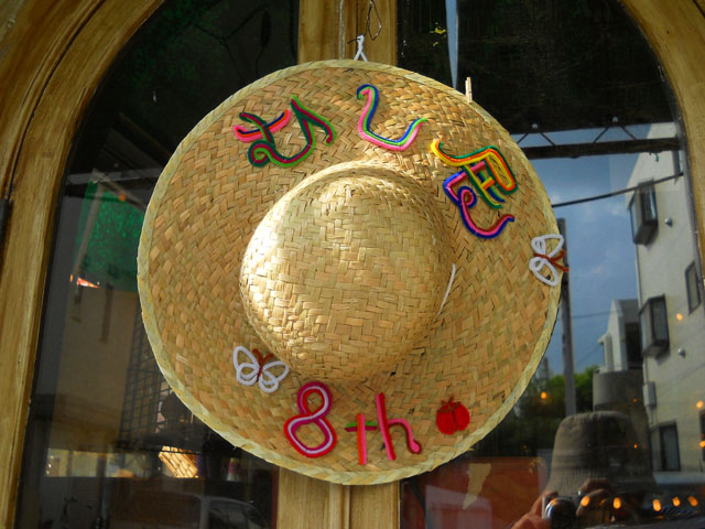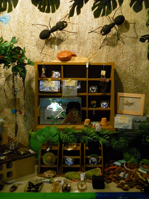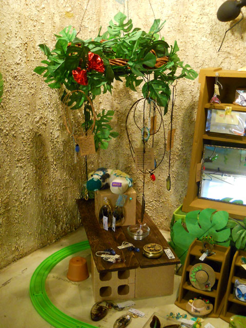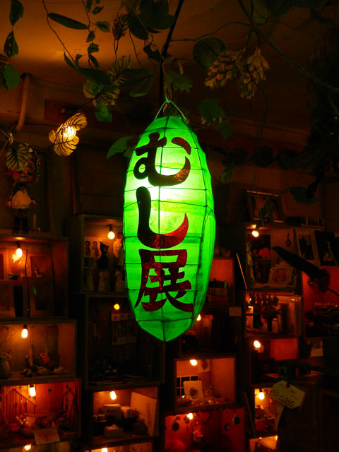 今年の第8回「むし展」の開催を告げる看板は、ニヒル牛2はガラス作家のヨコタケイさんによる、麦わら帽子にモールで文字をあしらったサインです。お店のテント庇の隙間からこぼれる真夏の陽射しを受けながら、風にゆれるさまは虫好きの郷愁を誘うステキなデザインです。・°・。ニヒル牛の方は、これまでニヒル牛2で吊るしてきました、拙作のクロコノマチョウの蛹ランプを転用した、「むし展・提灯」を、店内の窓際に設置させていただきました。外が少し薄暗くなって参りますと、店内を怪しげな緑色の明かりが照らし始めて、結構外を通る方からも目に留まるようです・・設営中にも「むしだって。。」と幼い子供の話す声が聞こえて来たりしました。・°・。☆ 今日は徹夜明けの身体で、納品や買い出しなどでも大変長い距離を歩き周ったので、酷い暑さも追い打ちをかけて、帰宅する頃にはだいぶグロッキーな状態でした。。スーパーで買った値引きの鰹のタタキや、先日いただいた生ブルーベリー&バニラアイスを食べてようやく生気を取り戻しました。・°・。◎ アトリエ☆イボヤギ 木村大介