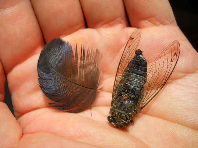 豆千代モダン新宿店にて、8/21(金)から始まる企画展「みんなのナンバー展」向けの作品作りを進めました。ご好評いただいております「球付きパンダ」の帯留め作品の、球をビリヤードの玉に見立てて制作しておりますが、今回選んだ玉の番号は1,2,5,7番にいたしました。もしお客様からその他の番号へのリクエストがあれば、お応えするつもりです♪ 番号を手書きするのもなかなか難しかったのですが、その番号の入る白抜きの円をきれいにバランスよく描くのも結構苦心いたしました。。◯ 先日、立秋を迎えましたがそれと前後して、ツクツクボウシの鳴き声を耳にするようになりました。独特の力強い節回しには元気を感じますが、残暑がまだまだ続くとはいえ、そろそろ秋に向かい始めたことを知らされたような、どことなく切なさも漂わせているように思えて来ます。・°・。そんなことを感じながら歩いていると、昨年と同じ場所でまたツクツクボウシさんの亡きがらを拾いました。。そばには鳥の羽も落ちていて、いっしょに手の平に載せてみました。鳥の羽の落とし主は判りませんでしたが、陽射しを反射して輝く鳥の羽と、繊細で極めて薄く透明なツクツクボウシの翅の美しさにしばし魅せられました。・°・。お尻には少しだけ産卵管のような突起が見えましたが、雌だったのでしょうか・・? もしそうだとしたら既に産卵を終えて、無事に勤めを果たせたことを祈りました。・°・。 アトリエ☆イボヤギ 木村大介