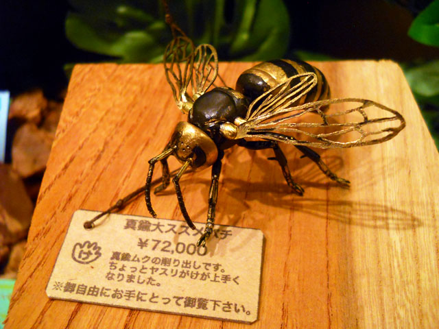 昨夜仕上がったばかりの豆千代モダン企画展向けの新作「「球付きパンダ・ビリヤードVer.」をパッケージングして、夕方納品に出掛けました。交差点で見上げた夕空は、夏らしい入道雲の隙間から漏れた強い光線がまぶしく映りました。・°・。無事に納品を済ませた後、ニヒル牛2を訪れて、自作品の追加納品と虫々トレインのメンテナンスなどを行いました。他の参加作家さんも追加納品されていて、虫のにぎわいが増しておりましたヽ(´▽`)/ 「むし展」向けBGMもご用意いたしましたので、虫の音を聴きながらどうぞごゆるりと虫アートをご堪能いただければと思います。・°・。♪ 革、金属、木を素材として、雑貨や模型等を作っておられるテケマークさんが、素晴らしい作品を納品されました! 真鍮製のおそらくほぼ実物大と思われる、オオスズメバチです。タグに書かれた解説によりますと、なんとこのサイズで各関節が可動するとのことで、実際に手に取って触らせていただきましたが、その技術力の高さには度肝を抜かれる思いでした。。(≧▽≦)!! みなさまもぜひご来展の節はご自身の目でお確かめ下さい。・°・。(*_*)/~ アトリエ☆イボヤギ 木村大介