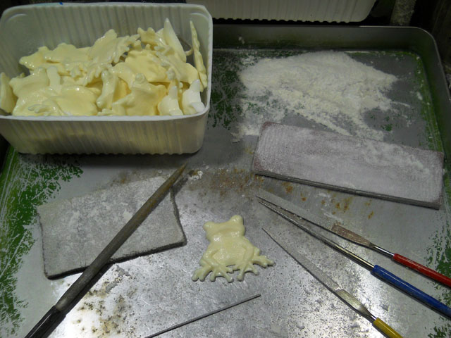 今日も朝から青い空が広がって、適度な風もあったおかげで今年最後の洗濯物もよく乾きました。・°・。◎ 制作が押していた個人オーダー品の作業を進めました。・°・。写真はしばらく生産を停止しておりました、ヤエヤマアオガエル・ブローチの正面向きバージョンです。・°・。指の間の形が複雑なため、バリ取りとヤスリ掛けもその分手間と時間を要します。・°・。深夜まで作業に没頭しておりましたら。。いつの間にか年を越しておりました。・°・。* たまZOOリポート・その7はオオゴマダラです。・°・。大きな翅を優雅に羽ばたかせてゆっくりと飛ぶ姿はすてきです。・°・。中には羽化してからだいぶ日数を経たのか、翅の縁がボロボロになった個体もおりますが・・・それでも健気に最期まで懸命に生き抜く姿には。。熱いものを感じてしまいます。・°・。◎ 昆虫園本館の前にある池では、冷たい水の中でも元気に泳ぐ小ブナの姿がありました。・°・。枯れ葉の積もった澄んだ水の底にはきっと、たくさんの小さな生きもの達が水ぬるむ季節を待ちわびて、じっと潜んでいることと思ひます。・°・。* アトリエ☆イボヤギ 木村大介