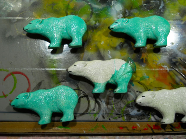秋の小菊の花にツマグロキンバエが訪れておりました。・°・。この間の多摩ZOO昆虫生態園で見かけた、名前の分からなかったハエちゃんの正体が、今回の再遭遇をきっかけに判明いたしました。・°・。◎ ぞうさんのお鼻のような特徴ある口先と、コミカルでキュートな動きですぐにこの間の仲間だと気が付きました。・°・。* ホッキョクグマⅡの塗装は順調に進みました。・°・。表面の白と裏面の黒色のどちら側もなんだか魅力的に映りました。・°・。○● またカラーピーマンがゲットできたので、今回はチンゲン菜と豚ひき肉といっしょに炒めて、ナンプラーで味を整えました。・°・。見た目の鮮やかさとエキゾチックな香りに、南国の味わいを楽しめました。・°・。* アトリエ☆イボヤギ 木村大介