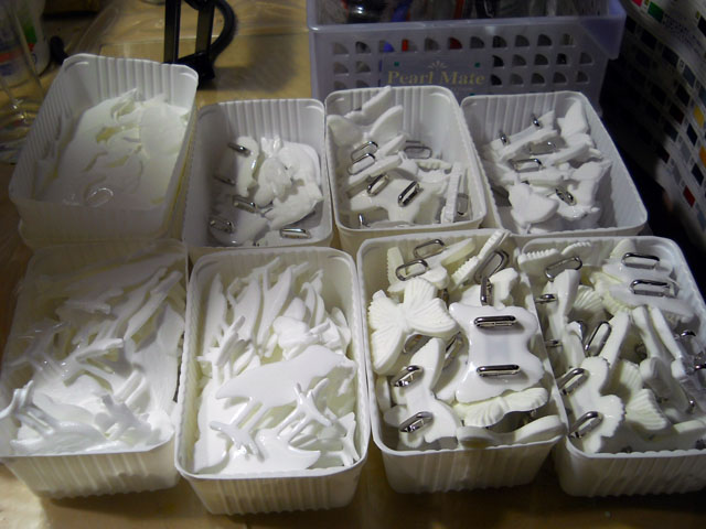 帯留めとブローチ作品の新たなバリ取り作業に入りました。・°・。二連続きの豆腐の空きパックが作業上ちょうどよいサイズで、仕分けるのにとても重宝しております。・°・。□ 網戸に留まったさび色をした渋いカラーリングのカメムシを見かけました。・°・。とても和テイストで骨董のような質感に惚れぼれいたしました。。調べてみたらクサギカメムシのようでしたが、体色にはいろいろとバリエーションがあるようです。・°・。* 先日花壇の隅でひとつだけ咲いているサフランの花を見ました。青紫の花びらに黄色い雄しべと真っ赤な雌しべの色合いがとてもすてきです。・°・。それにしても・・1gのサフラン・スパイスを採るために160個分もの花が必要とは。。恐れいります。・°・。* アトリエ☆イボヤギ 木村大介