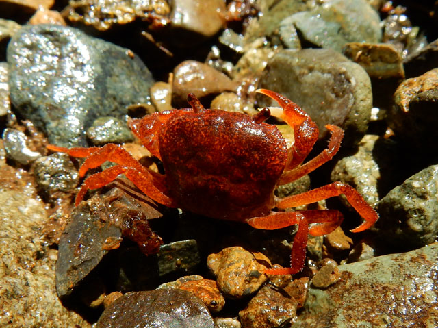 山のガイドにも掲載されていたサワガニをぜひ見つけたいと思い、水中に目を凝らして見ると・・・そっと持ち上げた石の下に、小さなカニさんが潜んでいるのを確認しました(°▽°)! できるだけ刺激しないように手の平ですくい上げると。。最初は素早く水に戻ろうとしましたが、間もなく落ち着いてくれて、日向のもとで写真を撮らせていただきました Y(i-i)Y 赤茶色の綺麗な体色の個体でした。。そして、サワガニさんは再び清流へと戻ってゆかれました。・°・。*