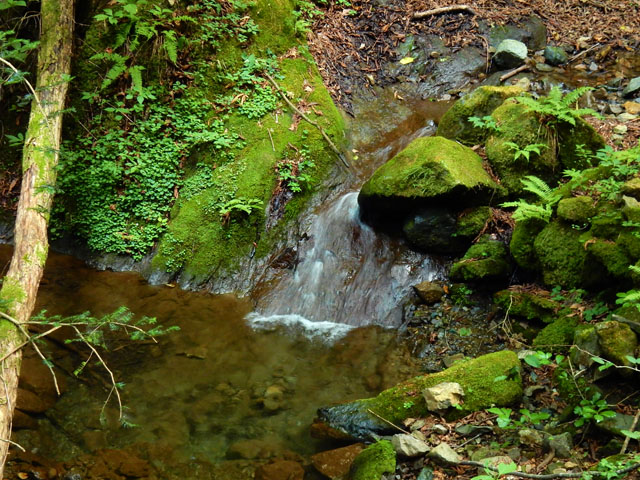 竜野峠からしばらく下ると、月尾根沢に沿って道が続きました。・°・。ひっそりとした静かな谷間にはシダや苔が多く生えておりました。・°・。冷たい清流にしばらく足を浸して、足首の疲れを癒やしましたが・・・5分と浸けていられない程の冷たさでした。。(≧▽≦) 谷のそこかしこで一面を緑の苔に覆われた岩や倒木をたくさん見掛けました。・°・。*