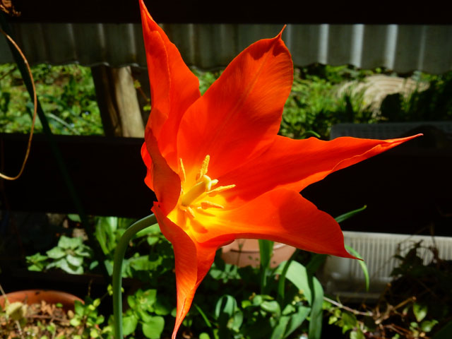 数日前、プランター植えのチューリップのひとつの蕾が、開花前に何者かに喰い荒らされておりました・・・これはもう無事に咲くことは難しそうだなぁ・・とあきらめておりましたが、今朝小庭に出ると。。黄色く鮮やかな百合咲の花を咲かせていて、大変に感動いたしました・・・(´_`。) お隣の鉢には同じ百合咲チューリップの、オレンジ色のパッションカラーの花も新たに咲いておりました。・°・。ヽ(´▽`)/