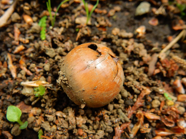 いつもの自然観察マイフィールドの雑木林で、シロバナタンポポの小さな群落を見つけました。・°・。関西では珍しくないと聞きますが、関東育ちのわたくしは野外でほとんど見かけたことがありませんでしたので、思いがけない遭遇をなんだかうれしく感じました(*'-'*) 少し薄暗い林床でしたので、白い花びらが清楚な雰囲気にも見えました。・°・。木漏れ日の差す地面には、芽を出したコナラのドングリもよく見かけましたが、写真のクヌギのドングリには穴が開いていたので、芽を出すことは叶わなかったようです。・°・。(*_*)