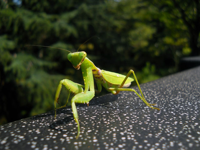欄干には数メートルおきに2~3センチ程の隙間があるのですが、その手前に差し掛かるとハラビロさんは一旦立ち止まって、一拍呼吸を整えるようにしてから エイヤっとばかりに乗り越えました。・°・。羽があるのでいざとなれば飛ぶことも出来るでしょうけれど、見ているこちらは滑りやすい手すりの上の歩行を、 半ばハラハラしながらいつの間にか見守っておりました。・°・。それにしてもなぜにあれほど真剣に橋を渡ろうとしていたのか、その目的は解りませんでし た。・°・。* もしあれが母ちゃんカマキリなら、最適な産卵場所を求めていたのかもしれないなぁ・・と思うのでした。・°・。◎ アトリエ☆イボヤギ  木村大介