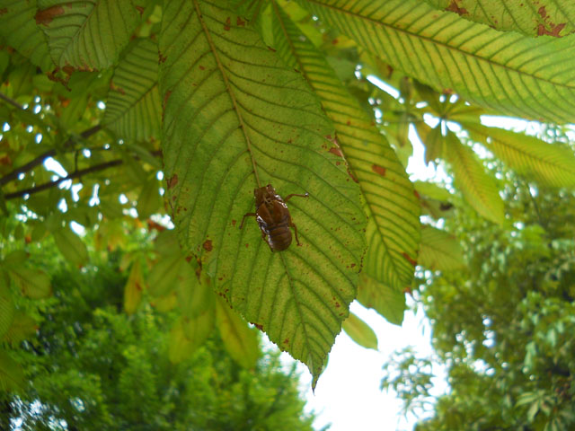 昨日の朝は明け方まで作業をしていて、だいぶ寝不足でしたので今朝は目覚ましを掛けずにゆっくりと起きました。・°・。溜まり気味だったデスクワークをこなして、久しぶりに図書館にも参りました。・°・。市営グラウンドの周囲にある雑木林ではドングリの実がいくつか落ちておりました。。すでに熟して茶色くなっているのもありましたが、その多くが黄緑色をしたまだ若いコナラのドングリでした。葉の付いたものが多いので、もしかしたら風で落ちたというより虫喰いによる落下なのかな・・?と思って調べてみたところ、おそらくハイイロチョッキリというオトシブミ科の甲虫による仕業のようでした。卵を産み付けた後に小枝ごと落下させるのが特徴とのことでした。今度見かけたら産卵孔を探してみようと思いました。・°・。◎ 並木の大きなホオノキの葉の裏に、アブラゼミかミンミンゼミと思われる抜け殻を見つけました。安全な場所を求めて、あんなに高いところまで登ったんだなぁと感心いたしました。・°・。今秋初の桃をゲットしたしました。桃色をした洒落たトレーに品種名は書かれておりませんでしたが、軽く冷やして薄く皮をむいていただきました。値引き処分だったせいなのか、あまり甘さは感じられませんでしたが・・香りとジューシーさを堪能いたしました。・°・。○ アトリエ☆イボヤギ 木村大介