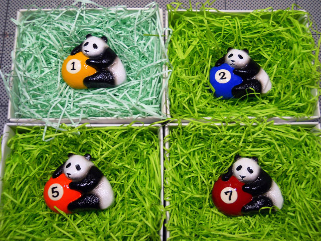 ☆アトリエ☆イボヤギからは帯留め作品の人気アイテム「球付きパンダ」の球をビリヤードの玉に見立てた新作を出品いたします!