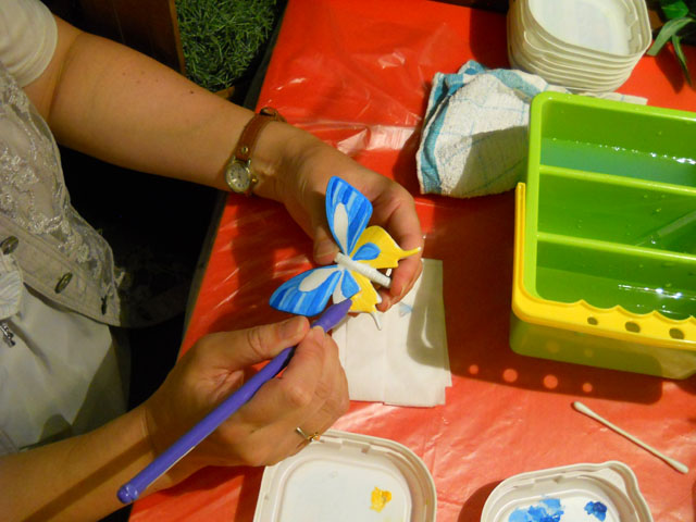 今日ご参加いただいた皆さまも、スマホで好みの蝶の画像を検索して、リアリティを追求される方、全くのオリジナルカラーで唯一無二の作品に仕上げられる方 まで様々でした。・°・。傍らでその仕上がってゆく過程を眺めていると、どんな風に変化してゆくのか。。とても興味深くて見ていてまったく飽きませ ん。・°・。(≧▽≦)!