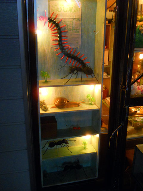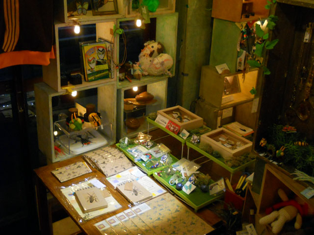 本日で8月に入りましたが、益々暑さの厳しさを感じるようなスタートでした。・°・。今日は第8回「むし展」の第一会場・ニヒル牛1号店の搬入日で、正午から搬入担当のスタッフが集まって、ツーツーツー(ニヒル牛2に隣接した多目的ルームの愛称)にて、各作家の作品の割り振りとディスプレイ什器等の制作を行いました。幸いにも備え付けの年代モノのエアコンが使用可能でしたので、その点はだいぶ助かったのですが…それでも長時間に及ぶ細かい作業と、炎天下での輸送作業はなかなか身に堪えました。。(-_-;) そんなこんなでみなさんの熱い情熱とご協力、そして誰にも負けない深い虫愛によって、制限時間ギリギリでなんとか展示会場の設営を無事に達成することが出来ました。。(T ^ T) これから始まる「むし展」ですが、たいへんお暑い中ではございますが、みなさまのご来展を「むし展」の作者一同心よりお待ち申し上げております。。ヽ(´▽`)/ 全ての作業が完了した後、久しぶりに秋田ばる七尾に寄って帰りました。写真はりんごビールとしょっつるポップコーン、奥に写っているのは いぶりがっこです。・°・。アトリエ☆イボヤギ 木村大介