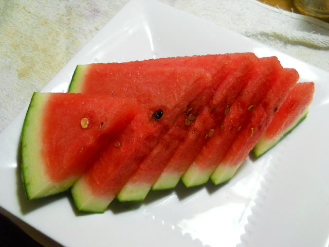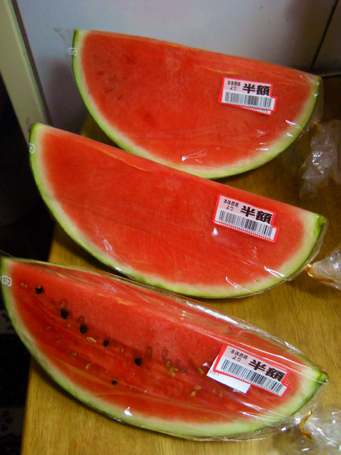 今週末の開業が迫っている虫々(ちゅーちゅー)トレインの車両塗装を進めました。・°・。写真はベースのボディカラーを吹き付けた後に、ハンドペイントでアクリル絵の具を施し始めたところです。真っ白なマシュマロトレインが、着々とカラフルなイモムシ達に変わってゆくさまは、見ていても塗っていても最高に楽しく幸せを感じるひと時で、現実世界の激しい暑さも一時忘れて没頭いたしました。・°・。◎ 塗装作業が一段落した後、宵の口のスーパーへ買い物に出ました。スイカが安くなっていないかなぁ。。と淡い期待を抱いておりましたが、店員さんが目の前で半値引きのシールを張り始めたタイミングでした。。(*゜0゜)! すかさず6/1カットのスイカを三個もゲットして、まるで昔話の欲張り爺さんのように。。その重さに幸運を感じながら帰宅いたしました♪ 写真は今夜の夕飯後の一人前ですが、あきらかに食べ過ぎですね。。(//▽//) これからしばらくはスイカ三昧が楽しめそうです(o^-^o) スイカの他にもビンチョウマグロの切り落としも値引きでゲットできたので、今夜は充実した食卓となりました。・°・。◎ また明日から制作に励むことが出来そうです(`_´)ゞ アトリエ☆イボヤギ 木村大介