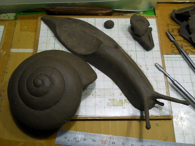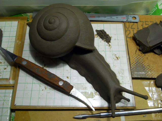今月に入ってようやく晴れ間が訪れました。・°・。気温も真夏日手前まであがって、湿度も高く蒸しむしと、久しぶりに夏を感じるお天気となりました。・°・。アパートのそばにある長細い緑地公園では、アカツメクサが丈を伸ばして桃色の花をたくさん咲かせております。・°・。その中に一見シロツメクサかな・・?と思えるほど極淡い薄桃色の花が混じり咲いておりました。・°・。花茎の下の葉の方を観ると、確かにアカツメクサの特徴である尖った形をしておりますので、アカツメクサの色変わりであることはすぐに判りました。以前にも何度か見かけたことがありましたが、いつ見ても上品な雰囲気の感じる美しさです。・°・。ネットで調べてみたら、雪花詰草(せっかつめくさ)という素敵な呼ばれ方もあるそうです。・°・。* デカ・マイマイの原型制作は、順調に進んで軟体部のフォルムも大方整って参りましたので、いよいよモールドを入れる段階に入れそうです。写真は再び殻を装着して、全体の雰囲気を確かめているところです。・°・。ii@_...アトリエ☆イボヤギ 木村大介