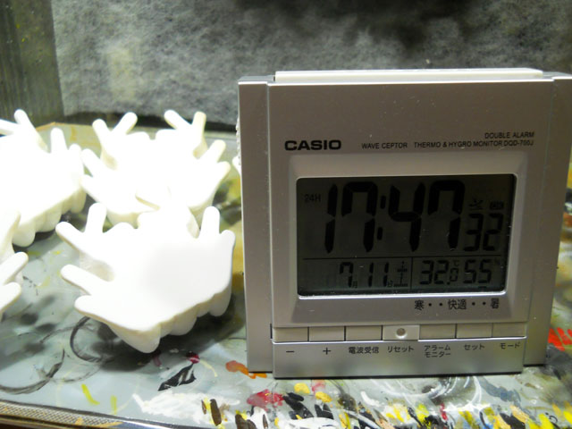 昨日よりも更に気温が上がって、2階にある作業部屋は32度を超えました。。湿度はそれ程ではなかった割に、蒸し暑さを感じて結構身体に堪えました。・°・。(-_-;) 晴天続きで助かったのは、新作のミステリオサスヤドクガエルの素材の乾燥が早まったことでした。本日はその素材の注型時に発生した、細かな気泡痕を溶きパテで補正する作業を行いました。・°・。先日雨に濡れた歩道の上で、ゴマダラカミキリさんの亡きがらを見かけました。。苔の生えた縁石の上で静かに横たわった最期の姿には、凛とした美しさを感じました。・°・。* 急に暑さが増して身体も着いて行くのが大変ですが、今宵はまた大好物のスモモをゲットしてクエン酸効果で元気を保ちました。写真は大石早生ですが、前回いただいた同じ品種とはお味が異なり、やはり産地による個性があることを実感いたしました。・°・。◎ アトリエ☆イボヤギ 木村大介