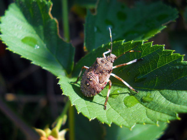 〈本日のタイトル解説:『雨露に濡れるカメムシ、ニューフェイス』〉