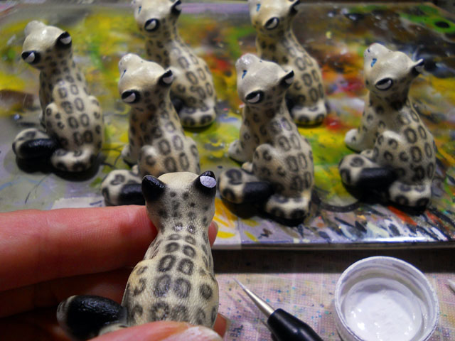 連日の寝不足がたたったのか、不覚にも体調を崩してしまい半日寝込みました。。(>_<) 出先の電車内で鼻をすすったり咳き込んでいる人が多かったので、警戒はしていたのですが。。寝不足と疲労で免疫力が低下気味の時にやられがちです・・・(*´ー`) 快復後は医食同源を強化して、出回り始めた好物のプラムをゲットして、クエン酸をたっぷり補充いたしました。・°・。◎ ユキヒョウ・フィギュアの完成も近づいて、仕上げの段階に入りました。写真は野生のネコ科に見られる、虎耳状斑(こじじょうはん)を施しているところです。・°・。緑の多い公園の公衆トイレで、タイルの床の上を歩いているセマダラコガネさんを見かけました。つぶらな眼と小粒感がたまらなくかわいくて、好きなコガネムシのひとつです。・°・。草むらではクロヤマアリと思われる羽アリを見かけました。女王アリなのかは判りませんでしたが、普段見かけるアリと比べて倍以上の素早さで、アリというよりハチのような動きでした。もし女王さまなら、早く巣作りの適地を見つけようと必死なのかな・・?と、健気な姿に思わず心でエールを送りたくなりました。・°・。ハブ・ア・グッドハウス(o^-')b・・と。。。・°・。◎ アトリエ☆イボヤギ 木村大介
