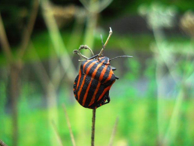 〈本日のタイトル解説:『赤黒の縞々カメムシ登り降り。・°・。*』〉