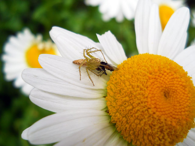 最近きゅうりがお手頃プライスで手に入るようになって、シンプルにスライスチーズを敷いたキューカンバサンドにして、エゲレス貴族のアフタヌーンティー気取りでよくいただいております。・°・。◎ 今日は明日から始まる西荻物産展の納品でカドッコ・ギャラリーhttp://cadocco.jimdo.com/へと納品に参りました。・°・。関東地方はまだ梅雨入り前ですが、夕方からまとまった雨の予報が出ていたので、家路を急ぎました。・°・。帰り道の公園前では梅の実がいくつも転がっておりました。。もう熟しておいしそうな橙色のもあれば、まだ青梅の状態のもあって、早速アリたちが集まり始めておりました。・°・。にぎやかだったうちのアパートのノースポールのお花畑でしたが、そろそろ花のシーズンは終わりが近づいております。。一見平和でのどかそうな花の上では・・常に喰うか喰われるかの厳しいサバイバルが繰り広げられておりますが。。先日も待ち伏せしていたササグモが、小さなハエかアブの仲間を捕らえた所に遭遇いたしました。・°・。* アトリエ☆イボヤギ 木村大介