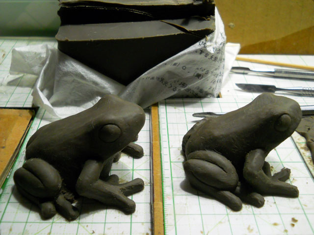 制作中の立体蛙シリーズの新作ミステリオサスヤドクガエルですが、もともと小振りないサイズがかわいいカエルなのですが、造り込むうちに大きさが増し気味でしたので思い切ってスケールダウンすることにいたしました。・°・。大きい方はいずれ手を加えて、また別の種類のヤドクガエルに生まれ変わらせる予定です。・°・。大雨や風にあおられたのか、はたまた鳥や虫によって落とされたのか。。まだ小さく青い柿の実がいくつか地面に落ちておりました。。「青柿が熟柿弔う・・」ということわざがございますが、まだ熟柿もないこの季節、志し半ばにして落下してしまった柿の実たちを、心の中でそっと弔いました。・°・。◎ 閉店時間 間際のスーパーでレタスが大幅値引きでたくさんゲット出来ました。ボリューム満点レタスサンドイッチにしても消費し切れないため、炒めものやレタしゃぶでもいただこうかなと思っております。・°・。*右端に写っているのは葉付きの小カブです。・°・。◎ 夜のジョギング&市営グラウンドの鉄棒での懸垂エクササイズの道すがら、歩道をゆっくりと歩いているクロコガネさんと出会いました。・°・。軍手に包んで持ち帰り、そのつぶらな黒い瞳と緩慢な歩みにしばし癒やされた後、夜空へ見送りました。・°・。仕事で疲れ切った日のエクササイズはつい億劫になりがちですが、小さな虫との出会いに励まされた気持ちになりました。・°・。★ アトリエ☆イボヤギ 木村大介