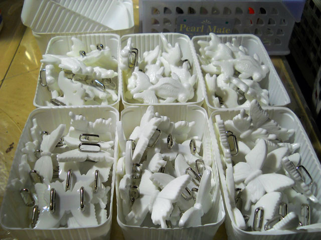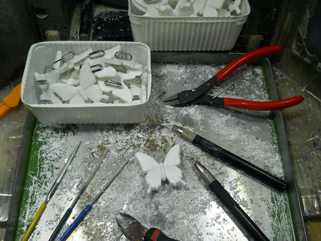 長らく掛かったデメキンのバリ取りに続いて、カラスアゲハ・帯留めのバリ取りに移りました。カラスアゲハは羽の縁の波型に入り組んだ形状や、羽と羽の隙間が狭いためにやはりなかなか難儀するアイテムですが。。根気よく気合を入れて励んでおります(+_+)/。・°・。 先日ご紹介したオオクロバエさんと同じ日に、やはり大柄で太っちょなアブの仲間と遭遇しました。。調べてみるとオオハナアブさんというお名前で、複眼の間が離れているのでメスだと分かりました。・°・。ころころとよく肥えていらっしゃるのが、なんだかキュートに映りました。・°・。食性は花の蜜や花粉だそうですが、幼虫は水生なので池や湿地のそばに生息するとのことでしたが、近くの不忍池が出身地なのかもしれないと思ひました。・°・。最近変わったお芋をゲットしました。・°・。里芋によく似ておりましたが、きぬかつぎ芋という名前で、里芋と同じように皮ごとゆでて塩を振りかけておいしくいただきました。・°・。◎ アトリエ☆イボヤギ 木村大介