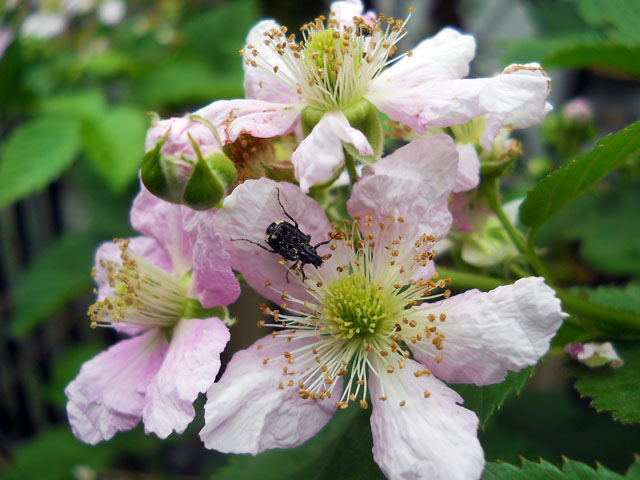 〈本日のタイトル解説:『ハナムグリ、受粉助ける黒ベリー。結実願って、感謝の念。・°・。● 』〉