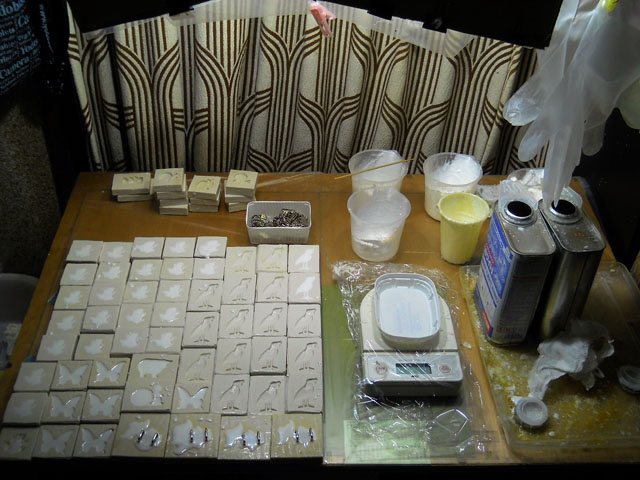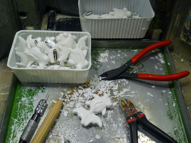 アパートの向かいにある緑地公園には様々な樹木がありますが、今を盛りとニセアカシアの高木がたくさんの白い花を付けて、やさしく甘く香っておりました。・°・。樹の上の方を見上げると、大小様々なハチやアブの仲間が花々を忙しく訪れておりました。・°・。ところがです。。その幹には白い紙が貼られていて・・・「美観調整のため、近々この木は伐採の対象となっております」といった趣旨のことが書かれておりました。。いったい何を基準にした“美観”なのやら・・理解に苦しむと同時に、虫たちの人気の的で毎年けなげに咲いている白い花々が、なんだかとても悲しげにゆれているように思へました。。。・°・。* 昨日までに型抜き作業を終えた、帯留め作品の出目金のバリ取り作業に入りました。曲線の多いデザインなので、効率よくバリ取りが進むように、デザインナイフとニッパーを使い分けて作業を行います。・°・。里芋がとても好きなのですが、拙宅の家計からすると普段はなかなか手が届かなかったものの。。先日は半値引きで二袋もゲットできたので、タワシで泥を洗い落として皮ごとゆでた後、指先でトゥルンと皮をむいて塩を振っていただきました。・°・。ゆでたばかりの熱々のほっくほくは特にたまりません。・°・。(o^-^o) アトリエ☆イボヤギ 木村大介