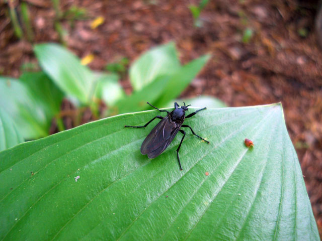 先日ゲットした真っ赤なトマトをスライスして、チェダーチーズ風スライスチーズの上に並べていただきました。フレッシュ&ジューシーなボリュームサンドで今日も一日創作活動に励むことが出来ました。・°・。写真はハシビロコウ・ブローチの眼の下色をハンドペイントしているところです。ハシビロコウの眼の色は若い頃は黄色系をしていますが、歳を重ねていくに従い青系になっていくそうです。・°・。新緑の井の頭ZOOリポート・その4をお届けいたします。・°・。木陰に生えている大きなギボウシ葉の上に、全身が真っ黒な虫を見つけました。。 緑の葉の上で黒い姿はよく目立ちましたが、警戒心が薄いようで近づいてもあまり逃げるようすもなく、時折後ろ両脚を上に反らして伸びをしたりと、なんだか のんびりとした雰囲気にほんわかした気持ちになりました。・°・。● あとで調べてみたところ、ケバエの仲間のハグロケバエではないかと思われました。オ スは複眼が目立って大きいようですが、わたくしが遭遇したのはメスのようです。・°・。秋になると毛むくじゃらの幼虫が大発生してとかく気持ち悪がられる そうですが、幼虫は落ち葉を食べるそうで特に人的害はないのに気の毒だと書かれておりました。・°・。* アトリエ☆イボヤギ 木村大介