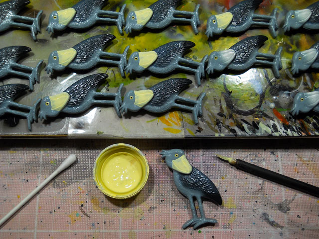 今朝は赤パン(ホームベーカリーで水の代わりにトマトジュースを用いて焼いた食パン)の上にスライストマトと、アボカドも重ね並べて醤油を垂らしてサンドし ていただきました。・°・。どちらも大好物の取り合わせで、朝からもりもりと食べて元気にスタートいたしました。・°・。本日もブローチ作品の塗装作業を 進めました。・°・。写真はハシビロコウのクチバシの下色を施しているところです。乾いた後に特徴的な紫色の斑紋を描き込みます。・°・。*新緑の井の頭 ZOOリポート・その5をお届けいたします。・°・。ホンドギツネ舎で2頭が仲よさげにウトウトしておりました。・°・。以前は通り掛かる度に、1頭が少 し寂しげな眼差しでこちらをじっと見詰め返していることが多かったのですが、ぴったりと寄り添う姿を見て微笑ましく思ひました。・°・。* アトリエ☆イ ボヤギ 木村大介
