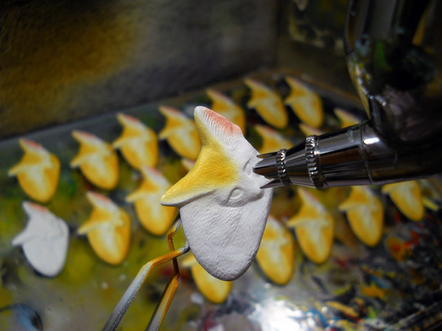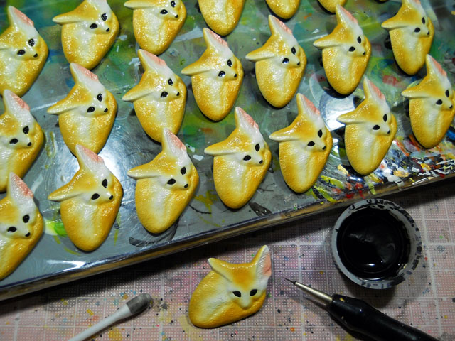 今日は朝から激しい雨と風が吹き荒れました。・°・。こんな日の外出は控えアトリエにこもって、ブローチ作品の塗装作業に専念いたしました。・°・。写真はフェネックの鼻の塗装を行っているところです。大きな目と比較すると、とても小さな鼻をしているなぁ・・と、塗装の度に感じます。・°・。●・● 春の多摩ZOOリポートのラストをお届けいたします。・°・。水辺の鳥のコーナーで二羽のソリハシセイタカシギが、クチバシを水に浸けては羽繕いをする一連の動作を、まるで示し合わせたかのようにピッタリと息を揃えて繰り返しており、その姿に感心をいたしました。・°・。◎ 昆虫園大温室の入り口手前にある、八重山諸島の生物展示コーナーでは、サキシマカナヘビの鮮やかで美しいグリーンにはいつも魅了されます。。くりくりとした目の動きと愛嬌のある表情にも癒やされてしまいます。・°・。* アトリエ☆イボヤギ 木村大介