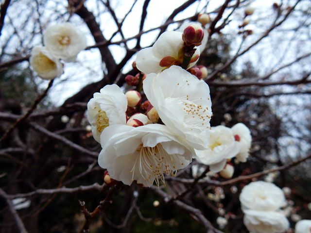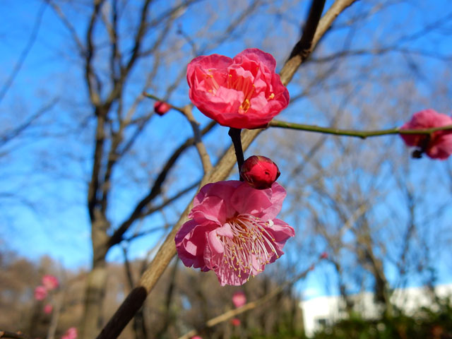 先週の日曜日(1/15)の朝は大変冷え込んで、拙宅アパートの縁台に置いたバケツの水も氷りました。・°・。それでも近くの公園では、早咲きの寒紅梅がさらに花を増やしておりました。・°・。隣接する雑木林を歩いておりますと、頭上の小枝を飛び回るエナガの群れに混ざって、メジロさんたちも団体でやって来て、笹薮の間で何やら採餌をされてゆかれました。・°・。*