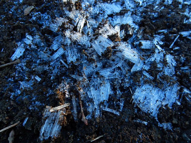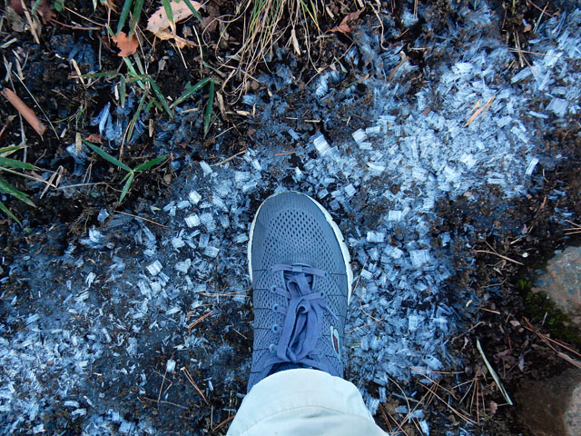 雑木林を抜け出た先にある公園の小さな池では、なんと水面が氷結していてびっくりいたしました・・・(*゜0゜) 水深があまりなさそうなので、そこに棲んでいる魚や亀さんたちの安否がちょっと心配になりました。。。(・・;) 公園の先にある小高い遺跡の丘を登ってゆくと、細長い黒土の小道が、高さの際立つ霜柱で埋め尽くされておりました。・°・。(*_*) 足で踏むと心地よいザクザク音と振動が、靴底から伝わって参りました・・・つづく 2017/01/20(金) アトリエ☆イボヤギ 木村大介 〈本日のタイトル解説:『氷点下 氷結ポンド(池)に 驚愕し・・・(*゜0゜) 』〉※昨年2016年9月末に小生パソコンの故障により、長らく当ブログの更新が滞っておりましたが、幸いにもデータの部分的復旧が叶いましたので、休載期間中の記事に付きましても、これから徐々にアップさせていただきたいと存じております。*ただ・・・失われた画像データのほとんどのファイル名が、復旧後に判読不可能な記号に置き換わってしまっております為、過去の記事に付きましては、判読可能な分から順不同にて掲載させていただくことになりますので、お見苦しい点が多々ございますが、何卒よろしくお願い申し上げます(-_-;)