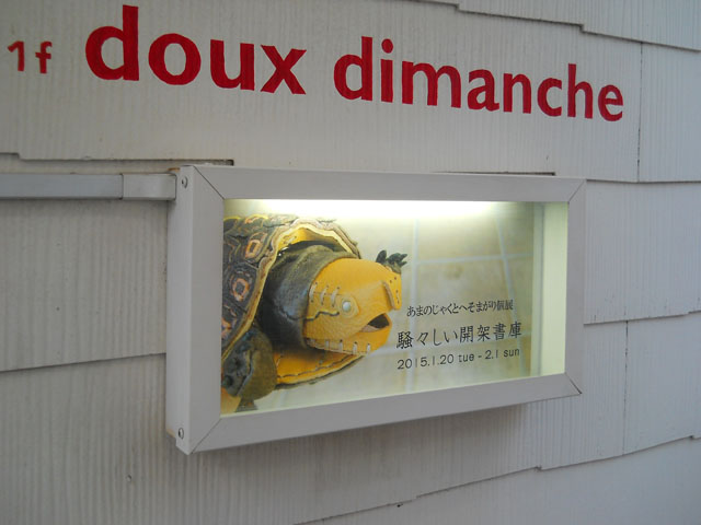 動物園へ納品の後、上野の御山を歩いておりますと、暖かそうな羽毛の隣に小さなドングリが落ちておりました。。よく見るとおそらく虫に空けられたと思われる、丸い窓がございました。・°・。どなたか中にいらっしゃるのかな?・・と思って爪の先でコツコツとノックしてみましたが、残念ながらご不在のようで。。?応答はございませんでした。・°・。中を覗き込むのもプライバシーポリシーに反するような気がいたしましたので、そのままそっと落ち葉の上に戻して立ち去りました。・°・。表参道のgalerie doux dimanche(ギャラリー・ドゥ・ディマンシュ)で本日から開催の皮革作家「あまのじゃくとへそまがり」さんの個展を観に参りました。・°・。今回のテーマは「騒々しい開架書庫」ということで、創作の資料として活躍してきた蔵書の中から飛び出してきた、魅力あふれる皮作品たちが会場いっぱいに拡がっておりました。・°・。会期は2015年1月20日(火)~2月1日(日)詳細はギャラリーのサイトをご参照下さい♪→http://www.2dimanche.com/exposition/expo.html アトリエ☆イボヤギ 木村大介