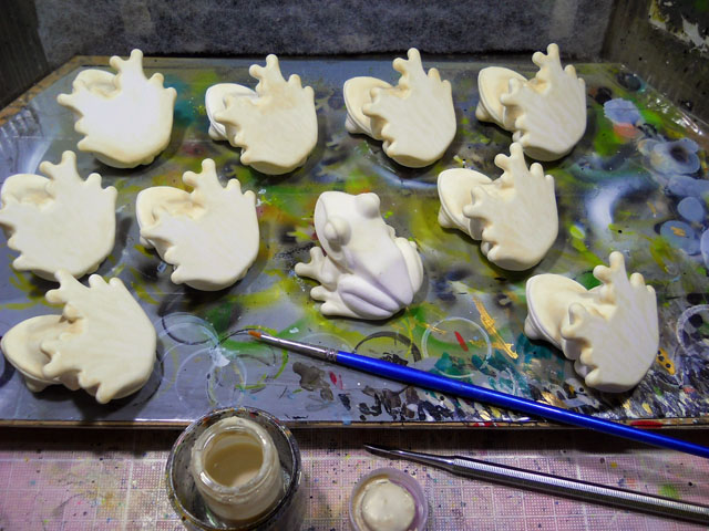 今日は新月と冬至が重なるという、珍しくそしておめでたい組み合わせの日なのだとラジヲで耳にしました。・°・。我が家のグリーンカーテンではまだ西洋アサガオのつぼみがたくさんついておりましたが、今朝見るとその全てが花開くことなくダメになっておりました。。。霜にやられた彼らの姿はまるで獅子唐のようにも見えましたが、志半ばで断念した哀しい姿に心が痛みました。・°・。* マレーバクと共にヤエヤマアオガエル・フィギュアの制作も進めております。・°・。写真は下地処理用のパテで細かい目止めを施しているところです。・°・。細かい作業が続いて目の疲労も増しておりましたので、紅玉のプレザーブにブルーベリージャムを合わせてトーストに載せていただきました。・°・。赤と紫の色味がおいしさを引き立ててくれます。・°・。◎ アトリエ☆イボヤギ