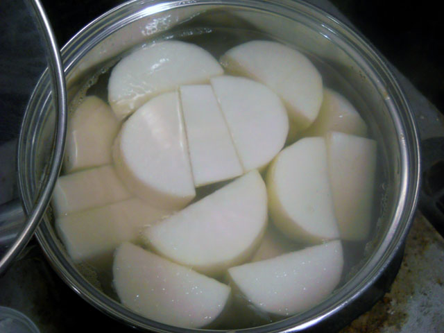 今日もまた厳しい寒さが続いております。。昼頃からみぞれ混じりの冷たい雨が降り始めました。・°・。チューリップのプランターを移動していたら、鉢底にオカダンゴムシを見かけました。丸まった状態だったのでやわらかい土の上に載せておきましたが、しばらくしてもそのまんまで動きがございませんでした。。亡くなると殻が乾燥してすぐに白くなるので、色艶からしてきっと健康状態は良好なようでしたが、きっとあまりの寒さに動く気がしなかったのかもしれません。・°・。◎ 買い置きの食材がだいぶ減って参りましたので、作業の合間を縫って、雨の中寒さを凌ぐため小走りで買い出しに行きました。・°・。濡れた黒い路面に、もみじの赤色がとてもきれいに映えておりました。・°・。おでんセットが安かったので、大根を一本分、できるだけ厚めに切って先煮しました。・°・。鍋布団で省エネしつつ、芯まで味の染み込んだおいしい大根が出来上がりました。・°・。* アトリエ☆イボヤギ 木村大介