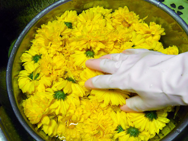 今宵は半年振りに親類同士伯母の家で集いました。・°・。大勢いる いとこたちそれぞれの子らも参加して、それはにぎやかな宴となりました。・°・。花好きの伯母が庭先から採ってきた花生姜の上に、元気なハラビロカマキリが一匹付いていたそうで、好奇心旺盛なちびっこ達のにわかアイドルと化しておりました。・°・。* 鮮やかな黄色い食用菊はおひたしにしてポン酢でいただきました。・°・。手作りのごちそうの数々や、鮮度の良い土佐の戻りガツオなどをいただきながら、互いの近況を秋の夜長に語り合いました。・°・。* アトリエ☆イボヤギ 木村大介