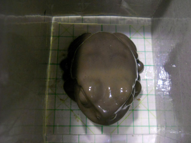 少し木陰になったそこかしこでは、今年もヒガンバナの赤い花が目につくようになりました。・°・。 * 立体カエルシリーズのイエアメガエルは、原型の表面に繰り返し塗り重ねてきた艶出し剤も、よい感じで滑らかな仕上がりとなりましたので、いよいよシリコーン注型を行いました。注型用の囲いの中におとなしく収まる姿は、さながら井の中のカワズといった趣です。・°・。◎ 最近アオドウガネの亡き骸をよく目にしますが、先日は坂道の滑り止め用の丸い溝の中に収まった子を見かけました。。手に取るとまだ脚が動いておりましたので、安全な草地に移動しました。・°・。他の溝でもコフキコガネがハマッておりましたが、こちらは残念ながらすでに活動を停止しておりました。。秋の深まりとともに一抹のさみしさも感じた、虫達の姿でした。・°・。*