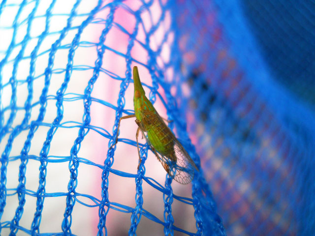 今朝ゴミを出しに行くと、ゴミ置き場のカラスよけネットの上に、小さな虫が留まっていることに気が付きました。。よく見るとそれは、わたくしの好きなテングスケバというヨコバイの一種でした。緑のボディと羽の網目模様もすてきですが、とくに頭部の水色とオレンジ色の模様がきれいです。・°・。* 新作の原型制作と平行して、定番アイテムの制作も進めております。・°・。今日も過ごしやすい気温で作業がとてもはかどりました。・°・。◎ 久し振りに皮付きの生トウモロコシを値引きゲットできたので、帰宅後皮をむいて素早くゆでました。・°・。ゆでたてに塩を軽くすり込んでかぶりつくのが最高です。・°・。♪ アトリエ☆イボヤギ 木村大介