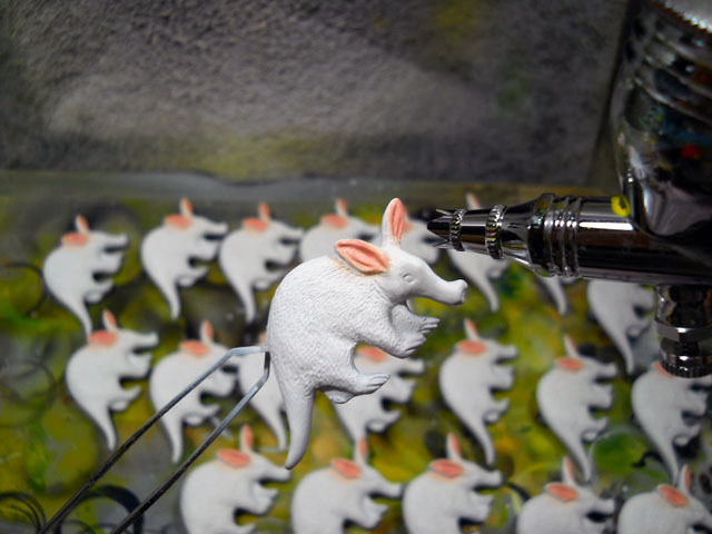 今日も朝からよく晴れて、ランドリーのシーツや敷布も気持よく乾いてくれました。・°・。◎ 気温はそこそこ上がりましたが、過ごしやすいお天気で作業もはかどりました。イエアメガエルの原型は全体のフォルムが決まったので、指先などの細かい造形に入りました。腕を組んでいるようなポーズが印象的でかわいいカエルなので、そこをうまく表現できたらいいな・・と思いつつ進めております。・°・。* 最寄りの郵便局の近くにある緑と虫の多い公園で、小さなゾウムシの仲間を見つけました・・・カメラをそっと近づけただけで、すぐにあたふたと逃げ出すほど警戒心が強い子でしたが、服や指の上を好きなように這わせているうちに慣れてきたのか、ようやく指先でピタッと動きを止めて。。つぶらな目とおしゃれな模様をよく見せてくれました。・°・。*