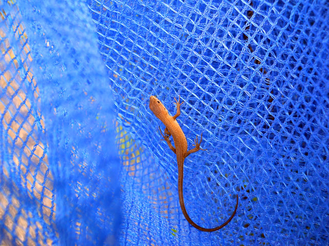 アパートの裏庭に続く半日陰の小道に、いっせいに芽を出したネムノキのような葉をした植物があります。・°・。ネットで調べてみましたがなんという植物の苗なのか判りませんでした・・・。明るい時間は葉を拡げているのですが、空が暗くなってくると葉を閉じる点はネムノキのようです。・°・。いずれにしても一面にそろった様はとてもきれいです。・°・。◎ ゴミ置き場の青いネットの上にカナヘビの赤ちゃんがおりました。。近づいてもあまり人を恐れず、まるで青いネットの海原でスルスルと泳いでいるように見えました。・°・。* 今日は真夏日となって久し振りに汗をかきました。。霧吹き気加熱作戦で凌ぎつつ、ブローチ作品などの制作に勤しみいました。・°・。◎ アトリエ☆イボヤギ 木村大介