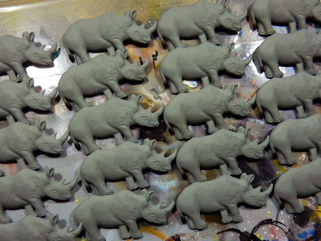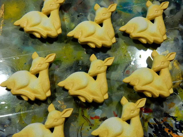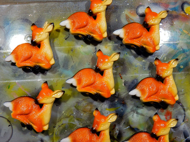 しばらく雨の多い不安定なお天気が続いていますが、今日は高曇りで気温の低い日になりました。・°・。また外出を控えてアトリエで塗装作業に専念いたしました。初めの画像は帯留め作品のニホンジカの仔(バンビ)です。尾の周辺の白さを損なわないよう、注意深く他の色を吹き付けて参ります。・°・。二番目の画像はクロサイのブローチ作品です。メインカラーのグレー調色を全体に吹き付けた後、近似色でグラデーションを掛けて立体感を醸し出しております。・°・。秋の味覚と言えば ぶどうも外せませんが、国産ではないものの、今年もメリケン国の皮ごと食べられる長細い種なしぶどうをゲットいたしました。品種名は書かれておりませんでしたが、二色の組み合わせでどちらもパクパクと口に放り込んで手軽にいただけるので、食事の支度中の小腹を満たすのにちょうどよい感じです。・°・。2016/11/02(水) アトリエ☆イボヤギ 木村大介 〈本日のタイトル解説:『 鹿の仔の 尾の白残して 色重ね。・°・。〇 』〉