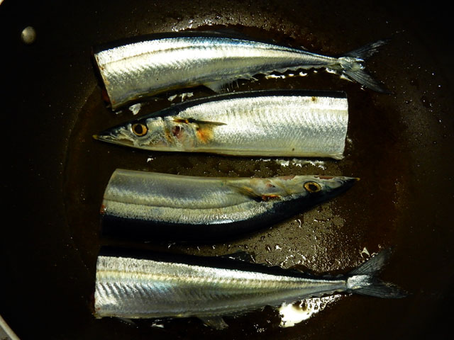 ここのところしばらく、アトリエにこもりきりで生活しておりましたが、買い物に出かけようと自転車置き場に行くと、こぼれ種から育った朝顔が、地面すれすれに小振りの花を咲かせておりました・・・もう霜月に入ったというのに健気に咲いた姿に心打たれました。・°・。アトリエでは帯留め作品の塗装に入りました。二番目の写真はニホンジカの仔(バンビ)の下地のアイボリー色を吹き付けている段階です。・°・。サンマがなかなかお手頃プライスにならなくて買い控えておりましたが、値引き品をゲットできたのでフライパンで焼いていただきました。それにしても漢字表記の「秋刀魚」の印象通りの美しい魚だなぁ・・・とあらためて感じ入りました。・°・。2016/11/01(火) アトリエ☆イボヤギ 木村大介 〈本日のタイトル解説:『 遅咲きの 朝顔咲いた 霜月に 。・°・。* 』〉