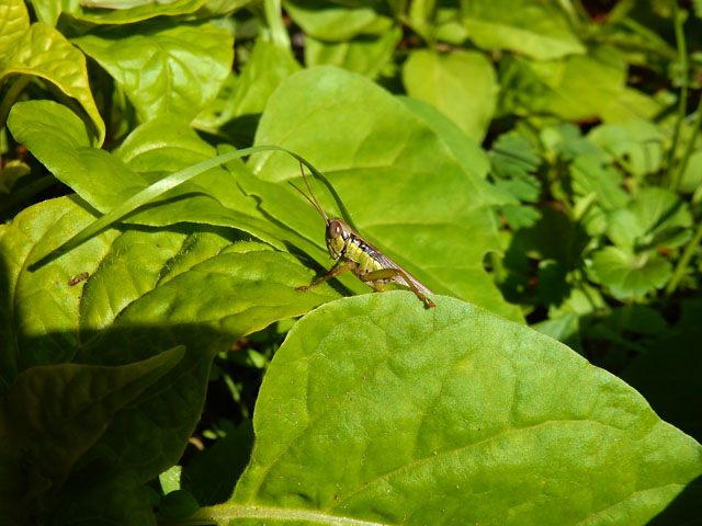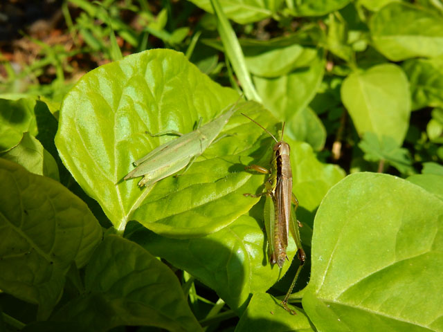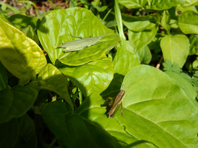 ゆっくりと姿をあらわすと奥の方に向かって歩き出しましたが、行く先には先客のオンブバッタさんが陽だまりで日光浴をしておりました。・°・。最適な場所を求めて陣地争いを始めるのかと思いきや・・・互いに干渉することなく平和に日向ぼっこを続けました(^-^) その3へつづく・・・アトリエ☆イボヤギ 木村大介